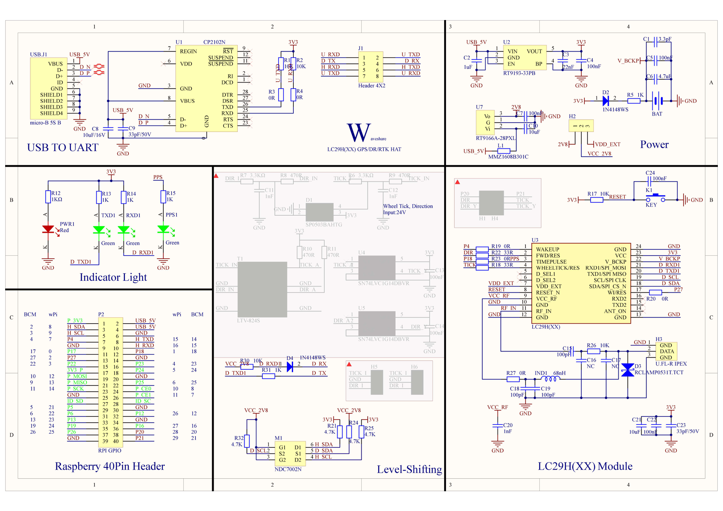 Full schematic for the Waveshare LC29H GPS/RTK HAT. Click any image to view at full resolution.